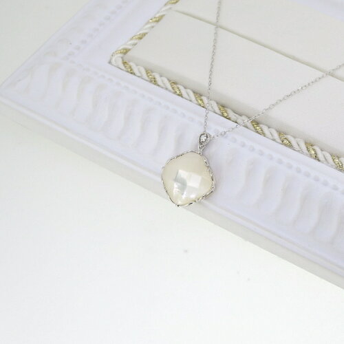 * * * ITEM DATA * * * 素材 K18WG / 白蝶貝 / ダイヤモンド(0.01ct) ペンダントトップ 高さ 約21mm x 幅 約16mm あずきチェーン 長さ 約36-40cm(調節可能) / 幅 約0.5〜0.8mm ※お届けするチェーンの仕様はページ上の記載と若干異なる場合がございます。