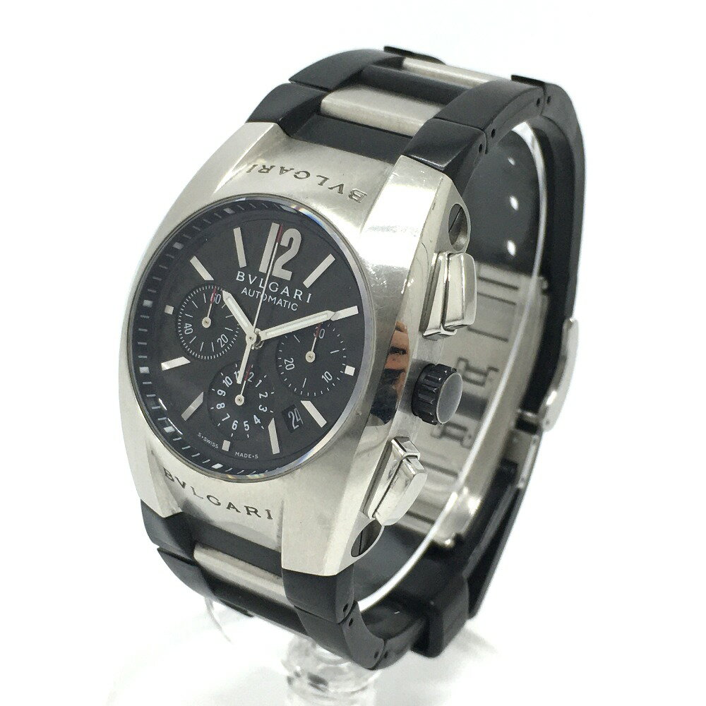 BVLGARI ブルガリ EG35SCH クロノグラフ エルゴン 自動巻き 腕時計 SS /ラバーベルト ボーイズ シルバー×ブラック 【中古】