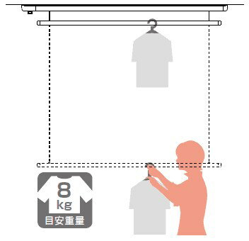 仕様 ◆全長 URM-S 1340 URM-L 1740 ◆竿の昇降幅(0〜1000) ◆操作棒:着脱式 ◆荷重目安ガイド ※物を掛けたまま昇降可能。